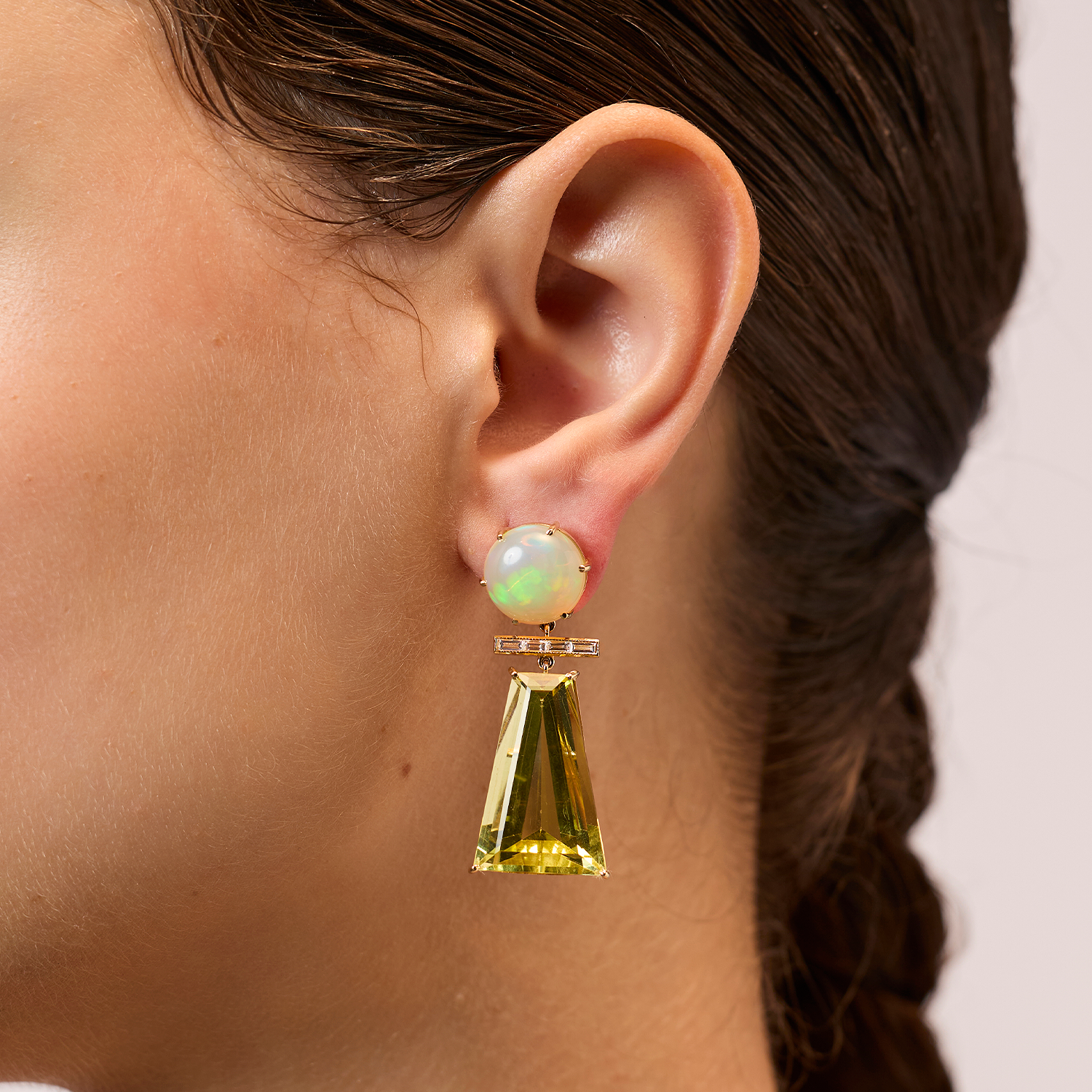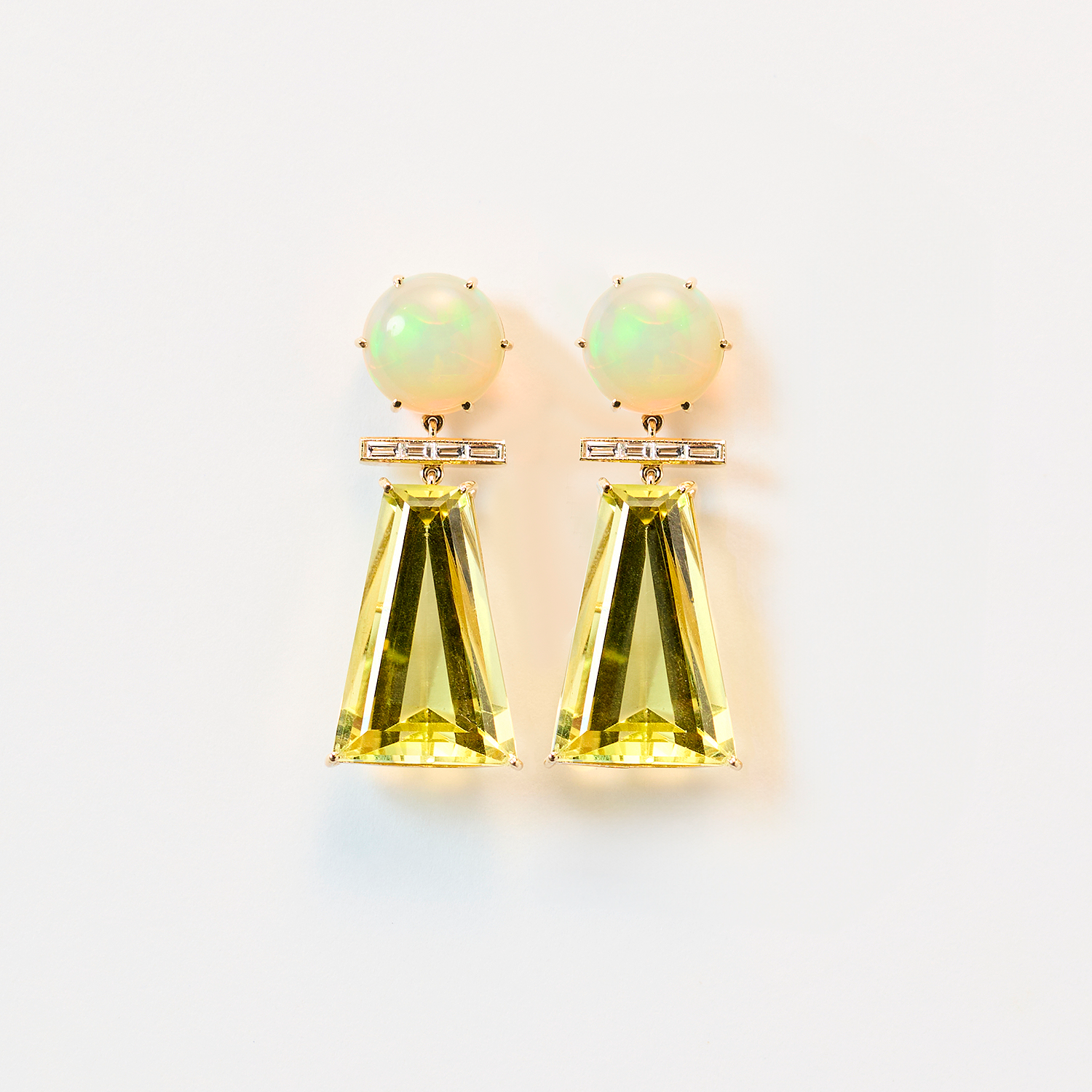 Opal Diamond and Lemon Quartz Earrings