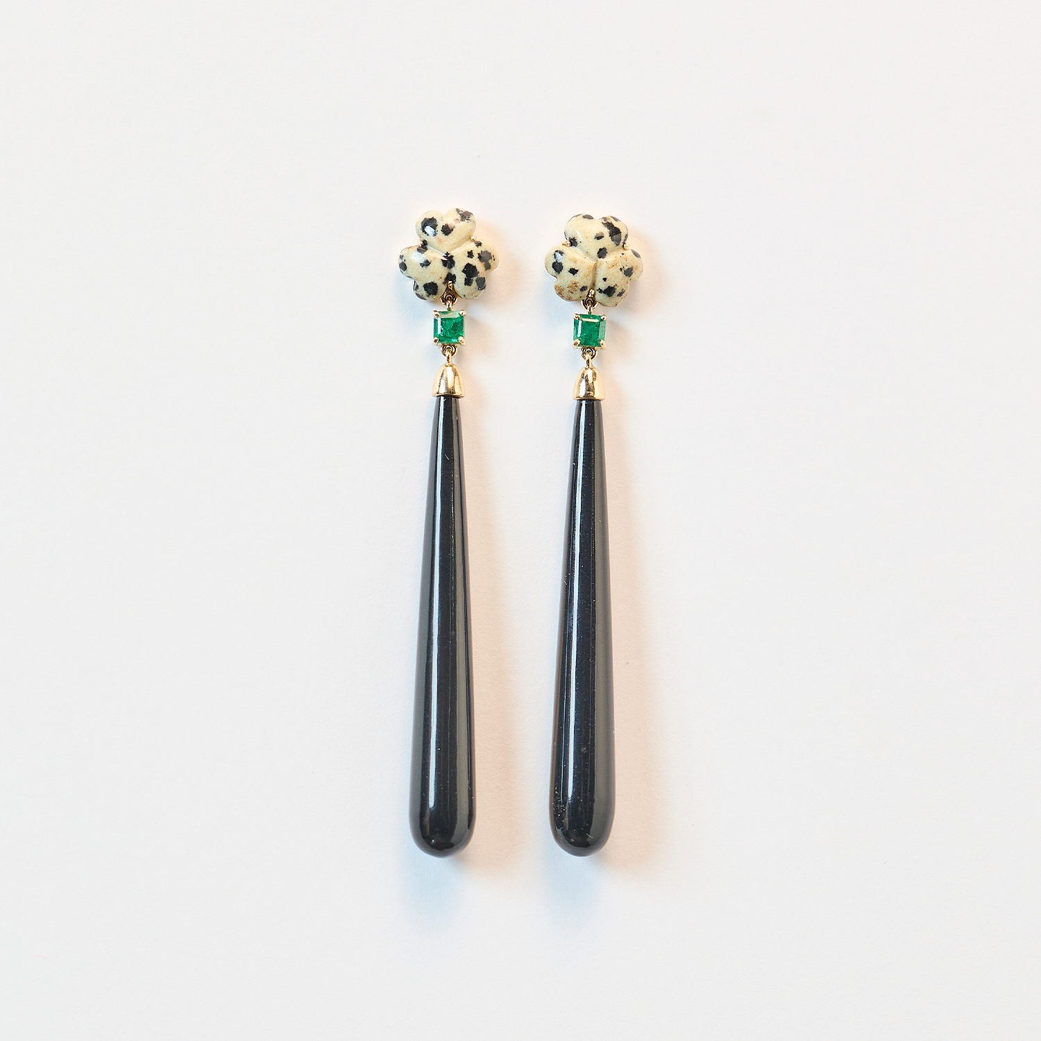 Dalmation Jasper, Emerald and Black Onyx Earrings