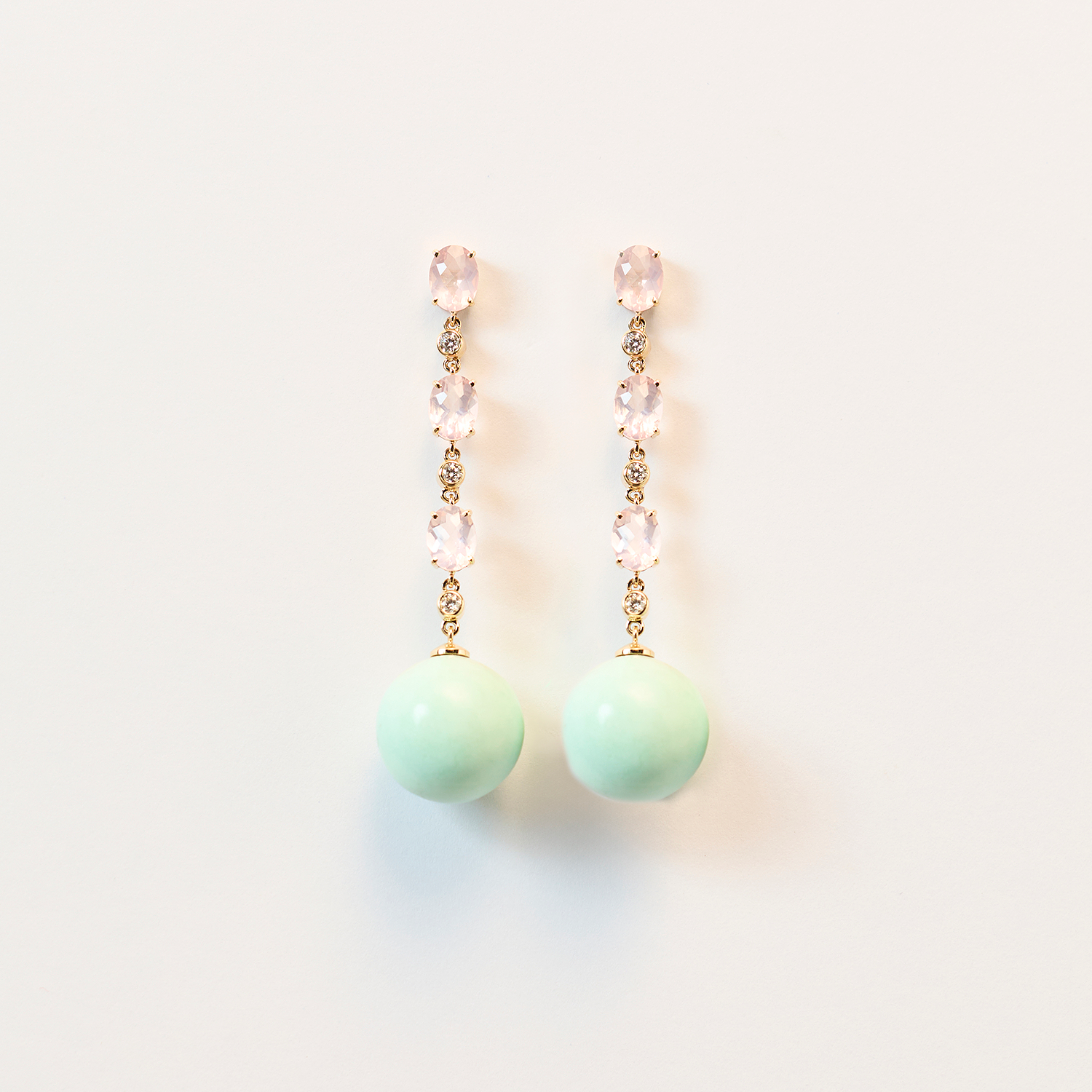 Bonbon Earrings with Rose Quartz, Diamond and Chrysoprase