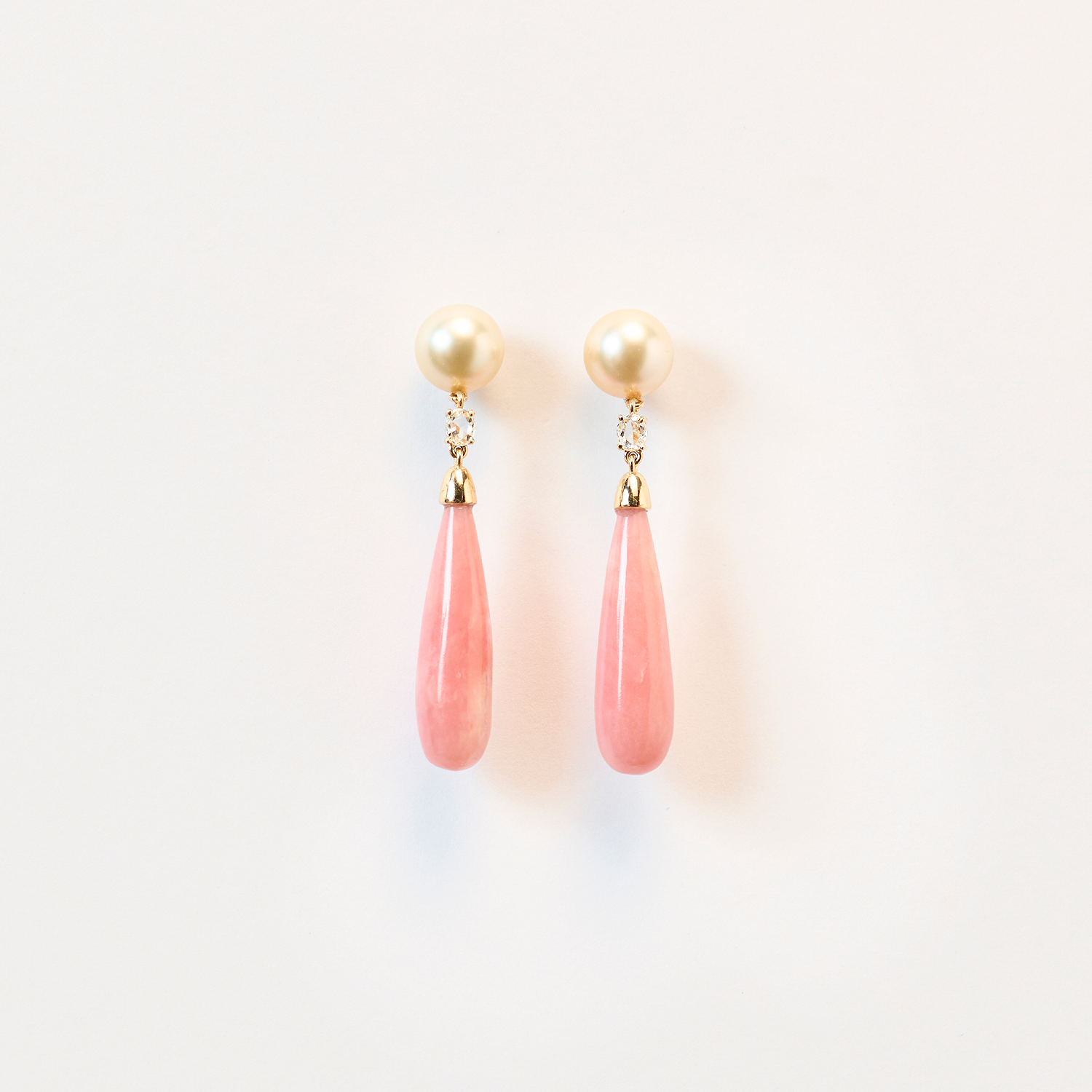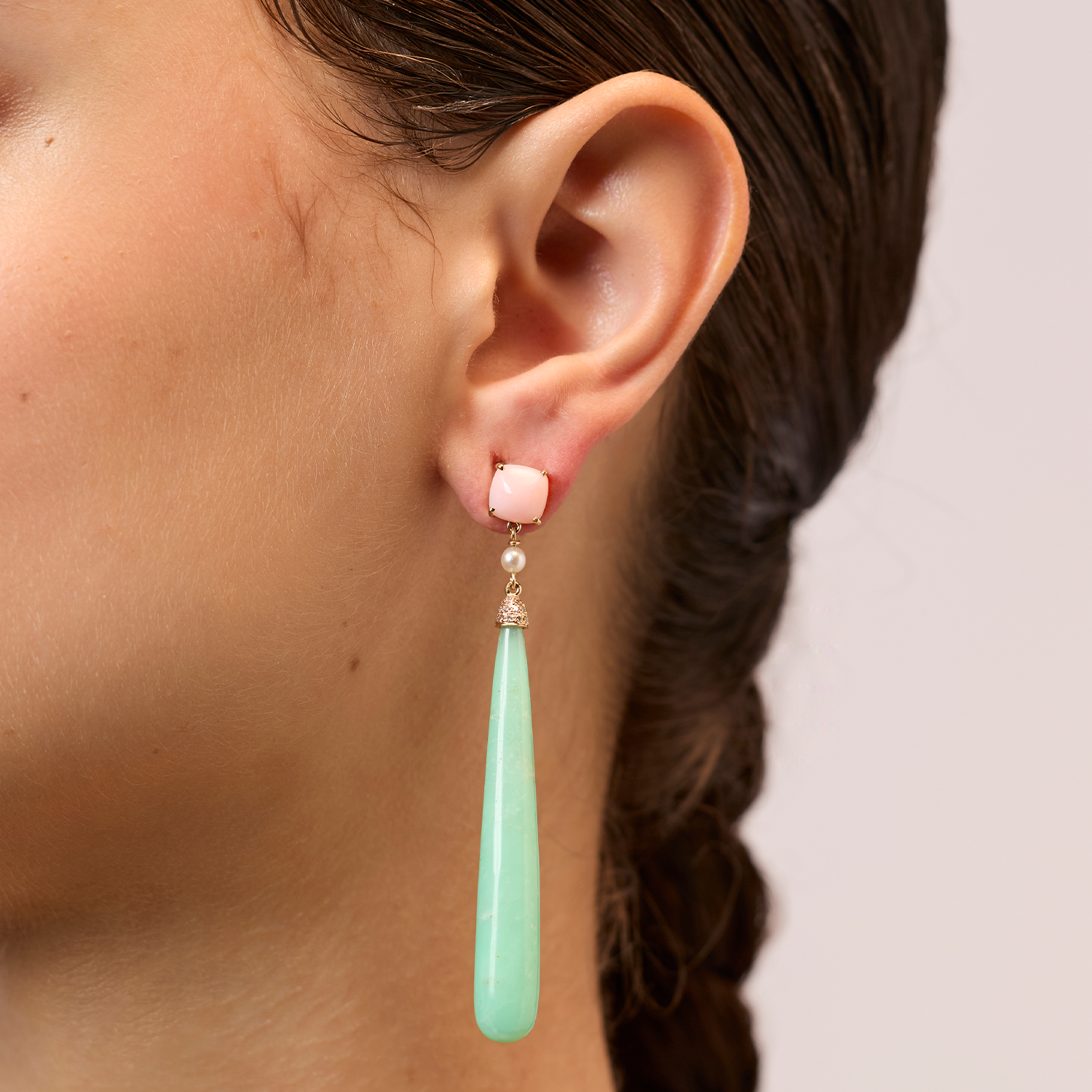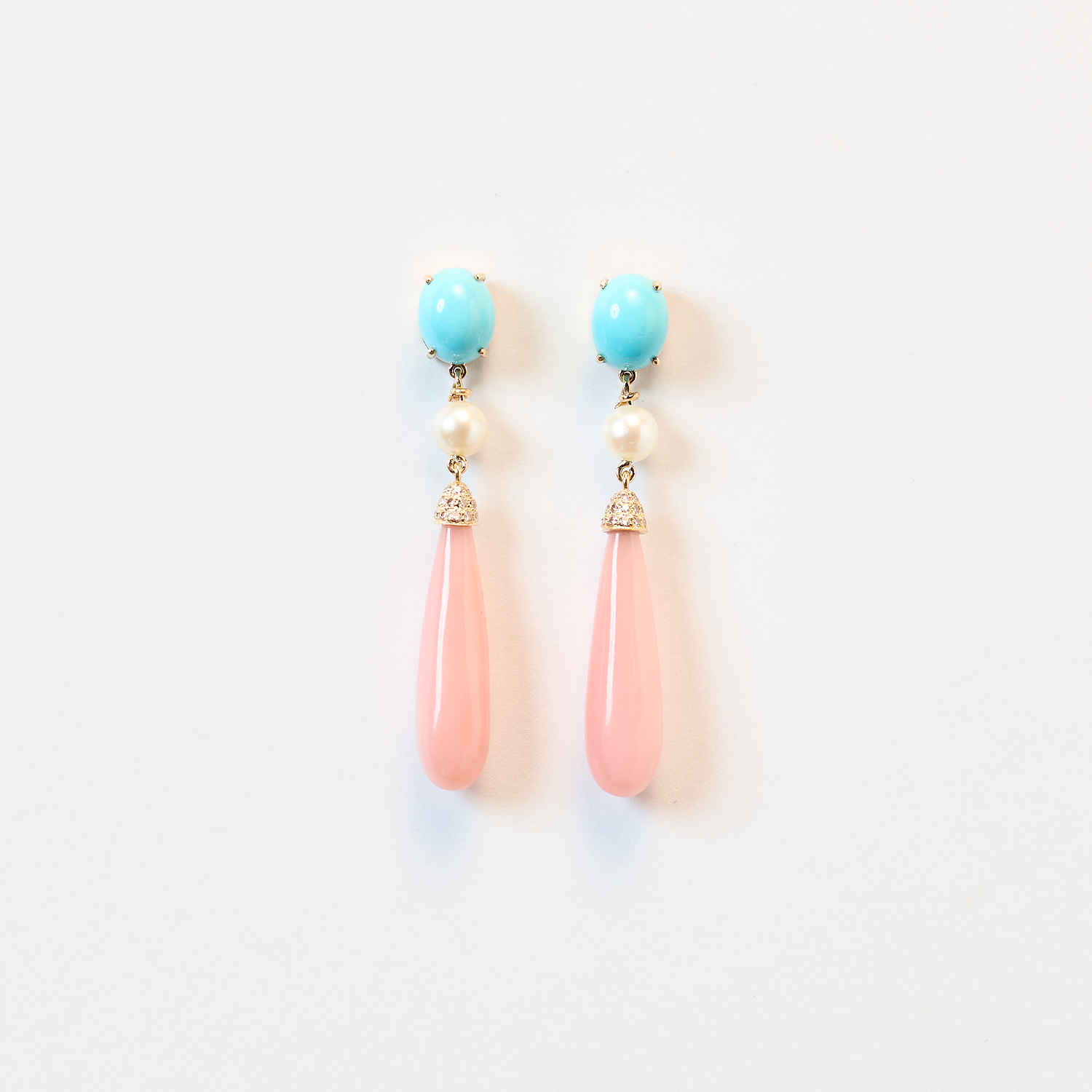 Turquoise, Pearl, Diamond and Pink Opal Earrings