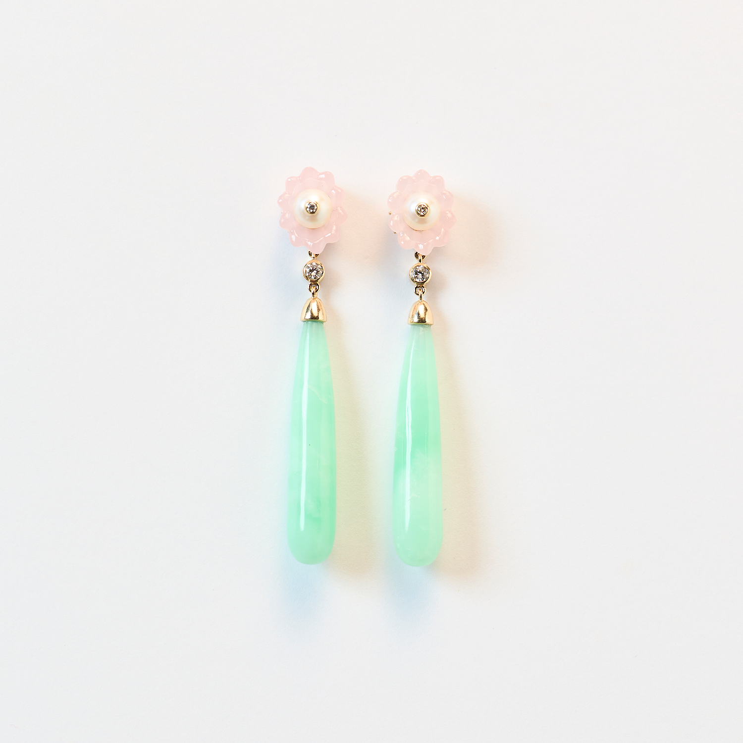 Bonbon Earrings with Rose Quartz, Diamond and Chrysoprase