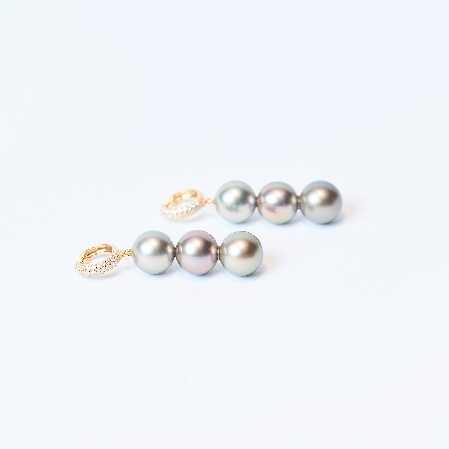 Megh Earrings in Ombre Tahiti Pearls and Diamonds