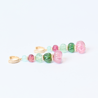 Hand-carved tourmalines, matched by colour and size, these earrings come close to perfection for lovers of coloured gems. Each tourmaline is enhanced by the luster of diamond bands, as well as diamond hoops.